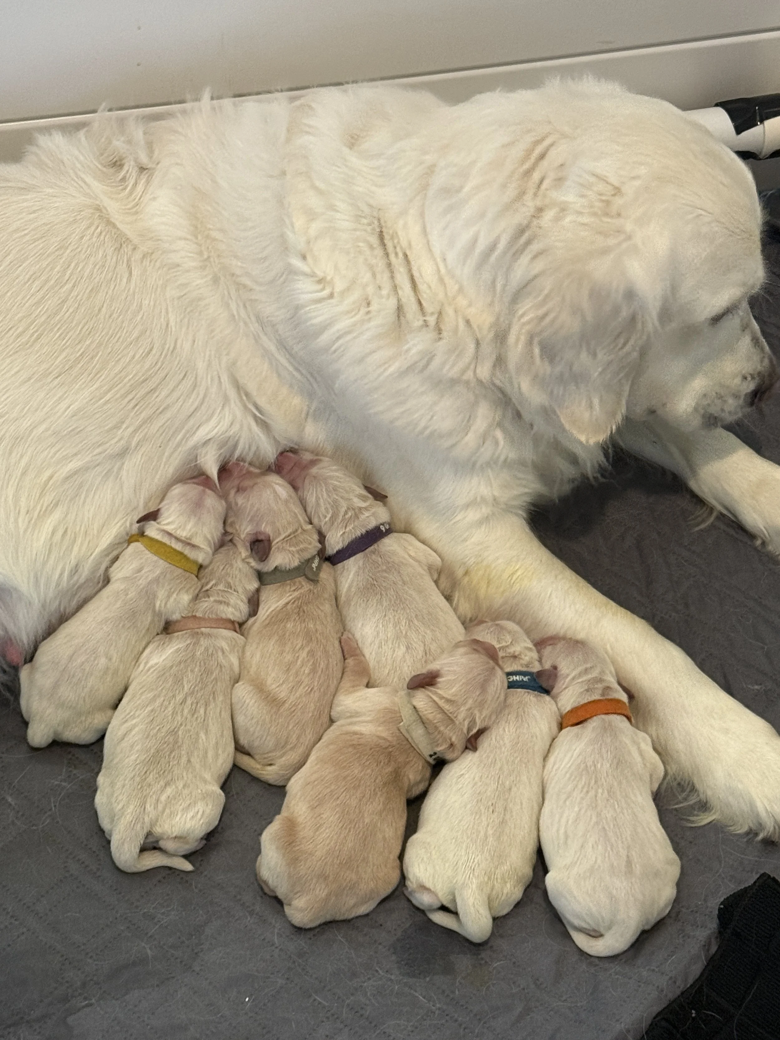 For Limted AKC registration (meaning you won’t be breeding your pup) our Golden Retrievers are $2250. Deposit is $500 to reserve your spot and the remaining $1750 will be due at pickup on March 21st. For Full AKC Registration (you WILL be breeding) our Goldens are $3000 with a $700 deposit.